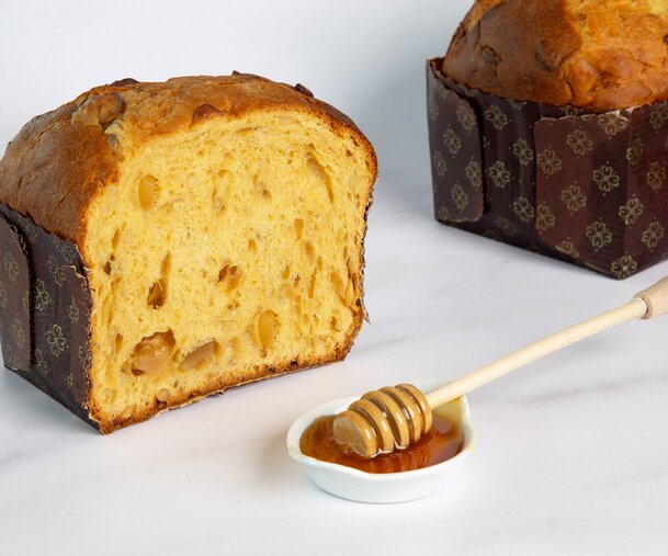 Cook with the reverse cooking method, for 1kg panettone we recommend the following procedure: (step 1: 120°C for 15 minutes, step 2: 130°C for 10 min. step 3: 140°C for 10 min. step 4: 150 °C for 10 min. step 5: 160°C for 10 min. with valve open). The time may vary depending on the weight and the oven used, however it is always recommended to reach a core temperature of 92-94°C.